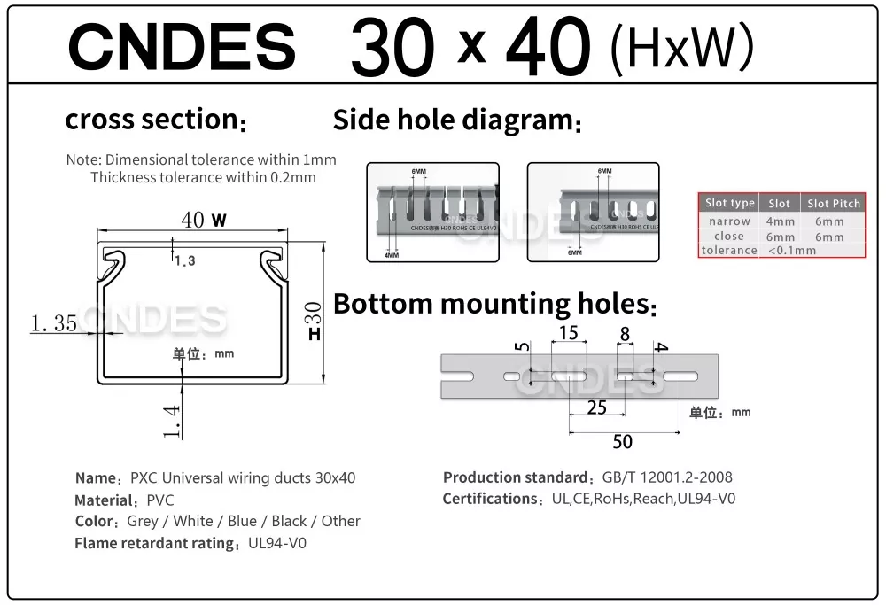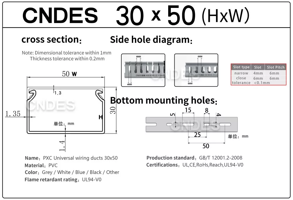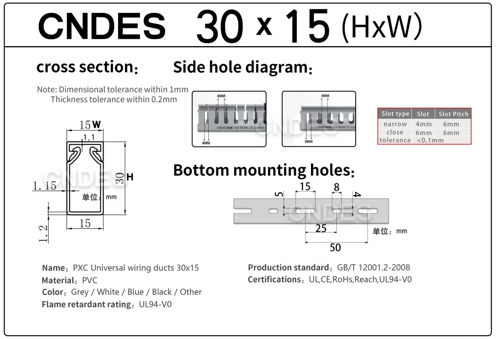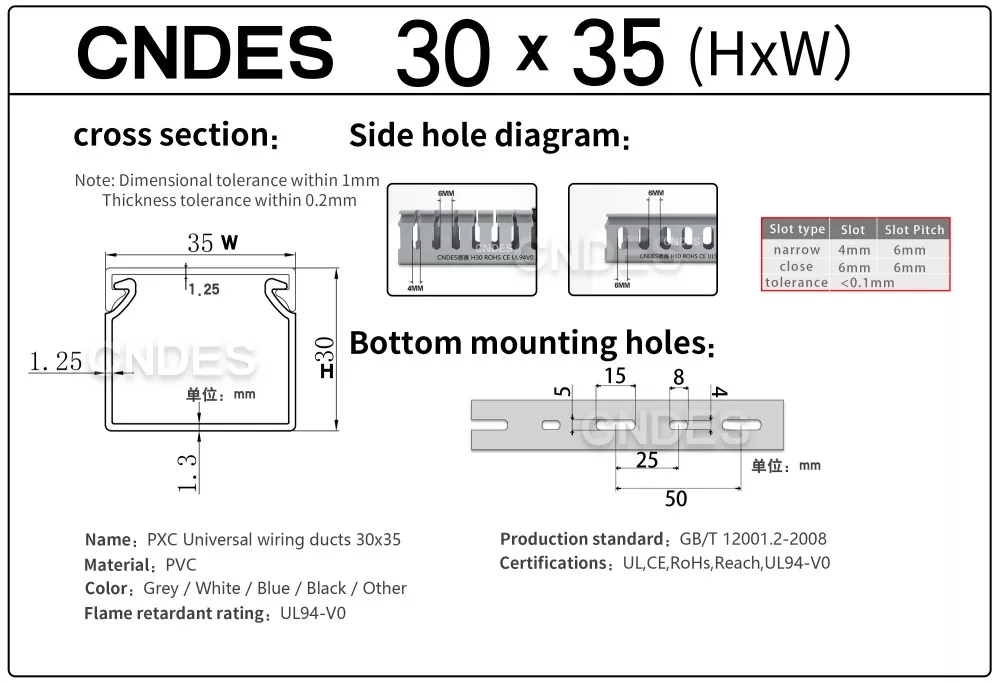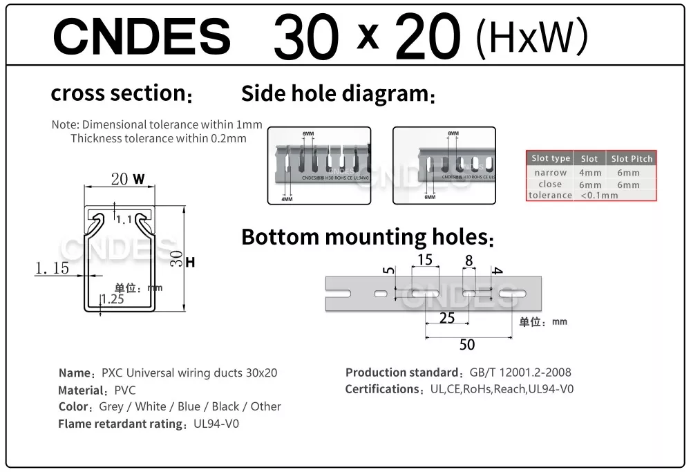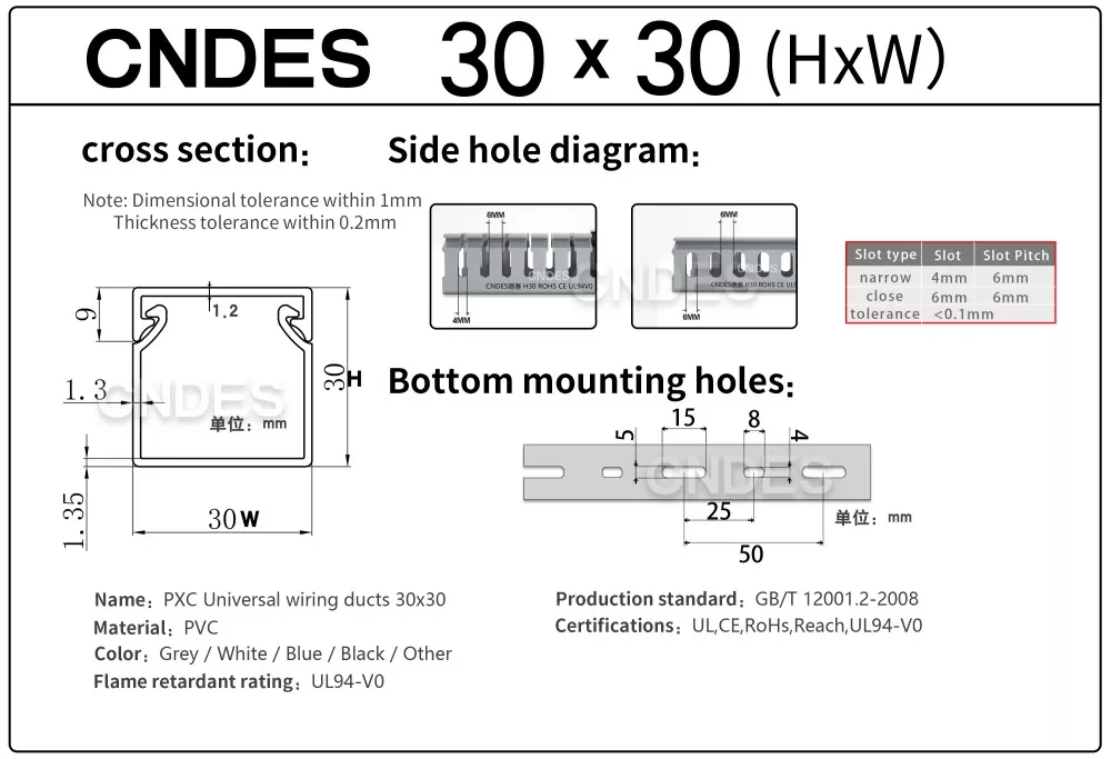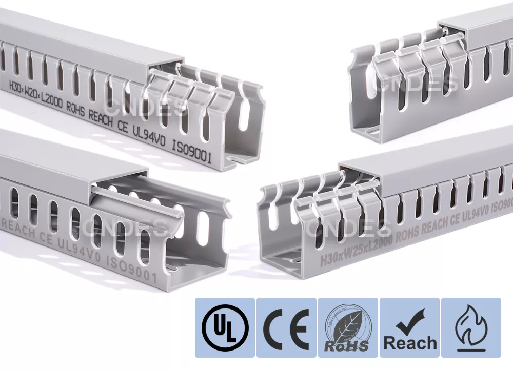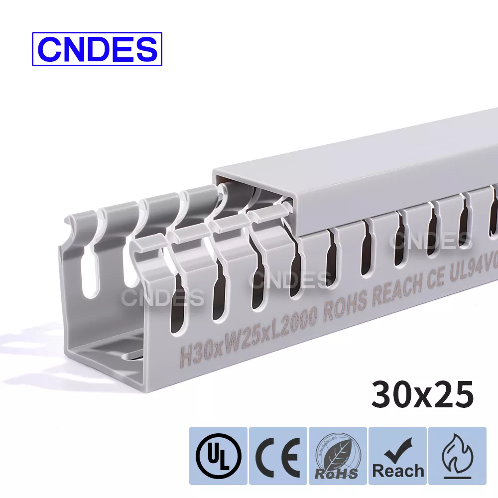 CNDES-i kohandatud 30 mm kõrguse piluga PVC kaablihalduskanal on mõeldud tõhusaks, kompaktseks ja ohutuks kaablite marsruutimiseks erinevates tööstus-, äri- ja elamutes. See kanal, mis sobib ideaalselt kitsa ruumipiiranguga rakenduste jaoks, tagab, et teie juhtmestik on korrastatud, kaitstud ja hõlpsasti juurdepääsetav.