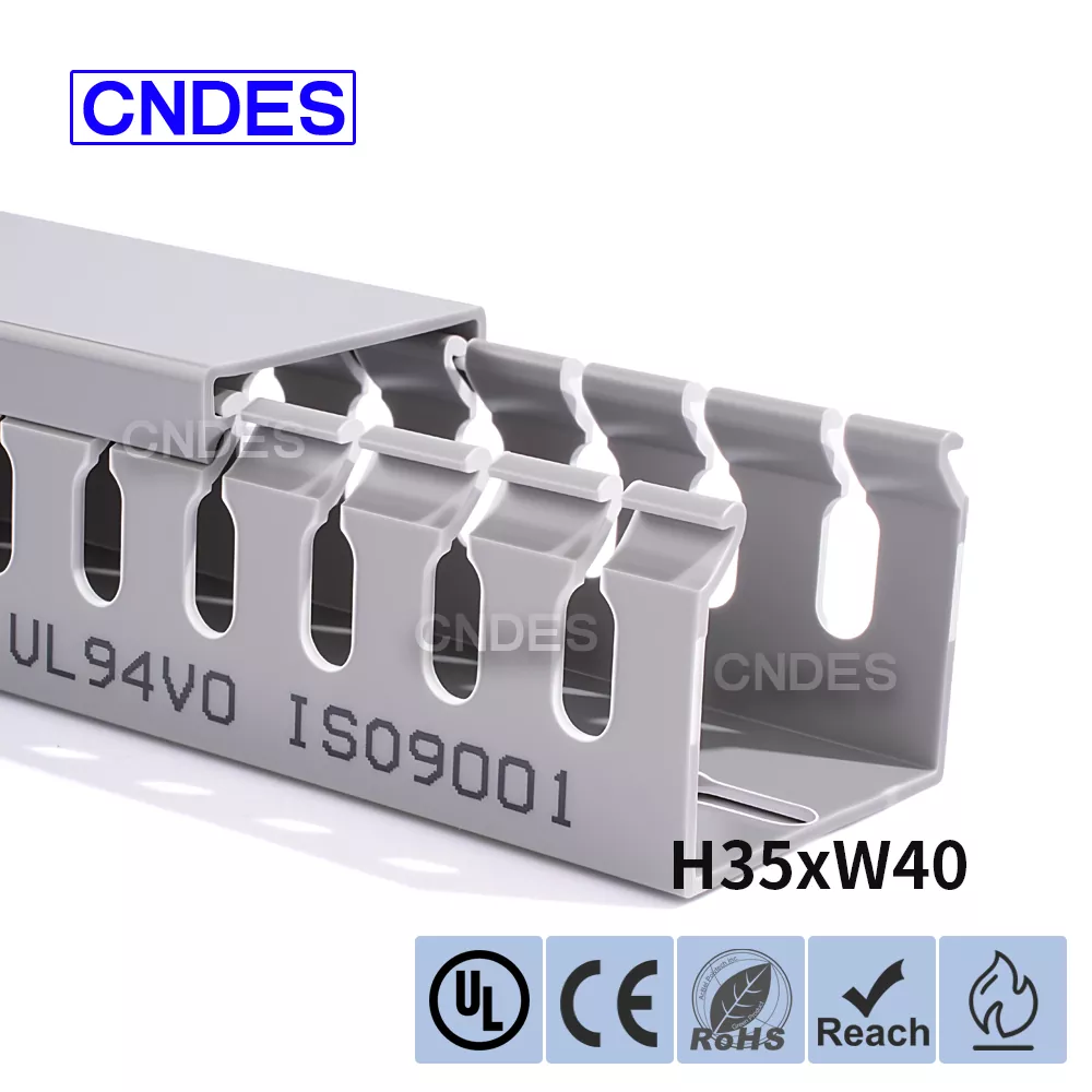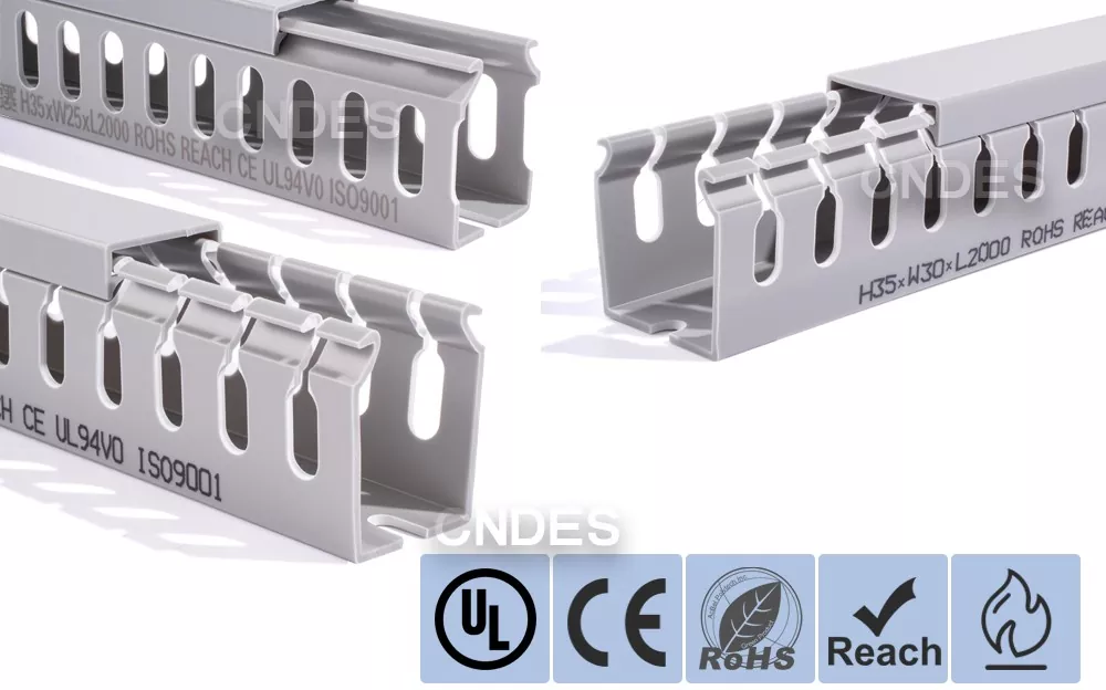 Rahvusvahelised sertifikaadid: meie kohandatud 35 mm kõrguse piluga PVC traadi suunamiskanal on sertifitseeritud vastama kõrgeimatele ohutusstandarditele, sealhulgas UL, CE, RoHS ja REACH.