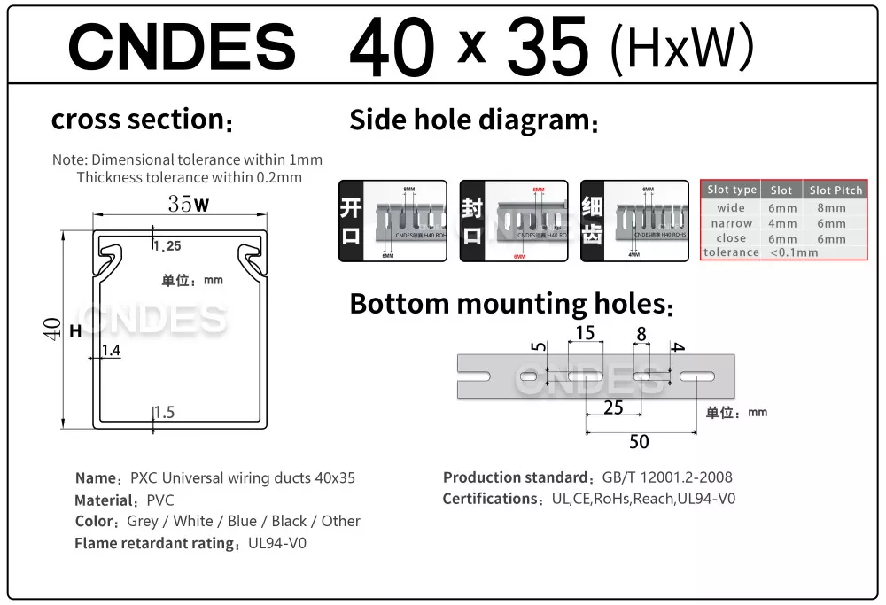 Kui otsite oma järgmise projekti jaoks usaldusväärset ja suure jõudlusega 40 mm kõrguse piludega PVC juhtmestikku, on CNDES siin, et aidata. Pakume kohandamist, kiiret kohaletoimetamist ja tehasest otsehinda, mis muudab teie vajaliku toote hankimise lihtsaks.
