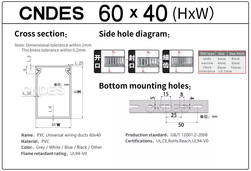 Hiinas asuva kogenud kohandatud 60 × 40 leegiaeglustava PVC juhtmestiku tehasena tagab CNDES: